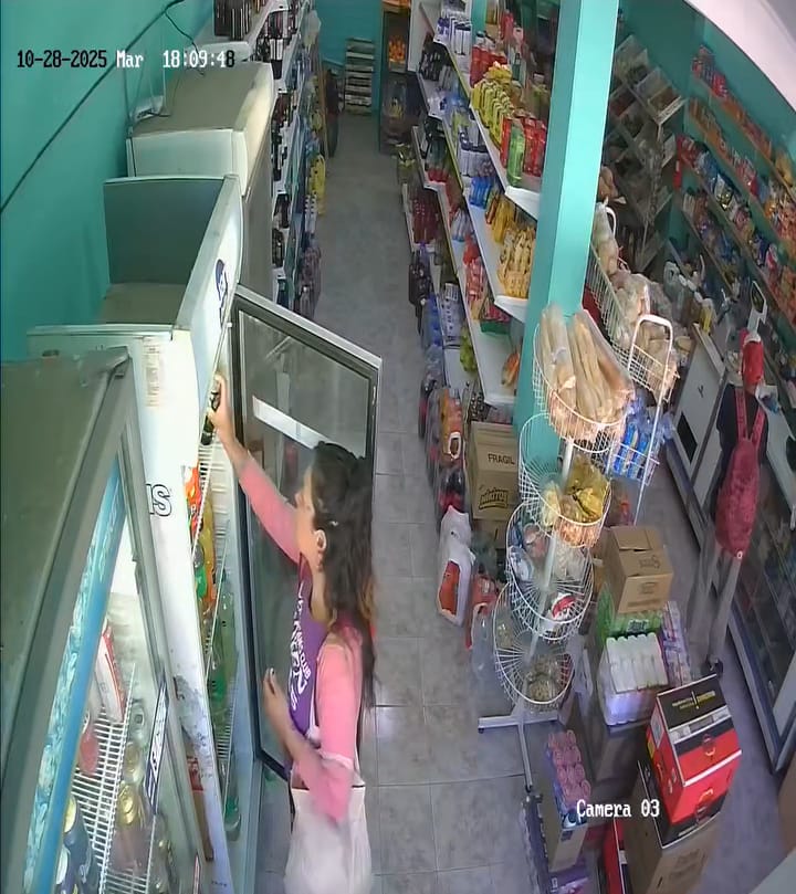 Un comerciante de Catriel difundió un video de las cámaras de seguridad de su local -grabado a finales de octubre- en el que se observa a una pareja actuando en complicidad para robar una bebida energizante. El registro, de poco más de un minuto, muestra cómo el hombre distrae al comerciante mientras la mujer se guarda la lata en el bolso.