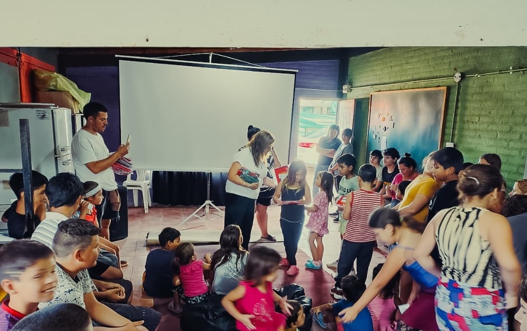 El merendero de Lote 14 fue escenario de una jornada especial donde niños y niñas pudieron disfrutar de una tarde de cine, con la proyección de una película brindada por la Dirección de Cultura del municipio.