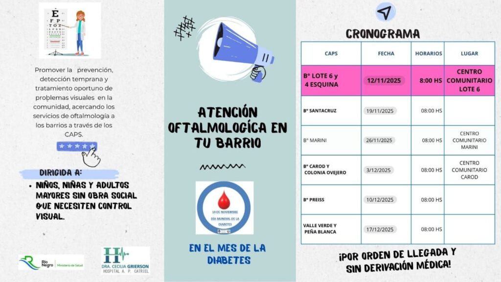 La propuesta, impulsada por el Hospital “Dra. Cecilia Grierson” junto al Ministerio de Salud de Río Negro, busca acercar la atención visual a la comunidad y promover la detección temprana de problemas oftalmológicos, especialmente en personas sin cobertura médica.
