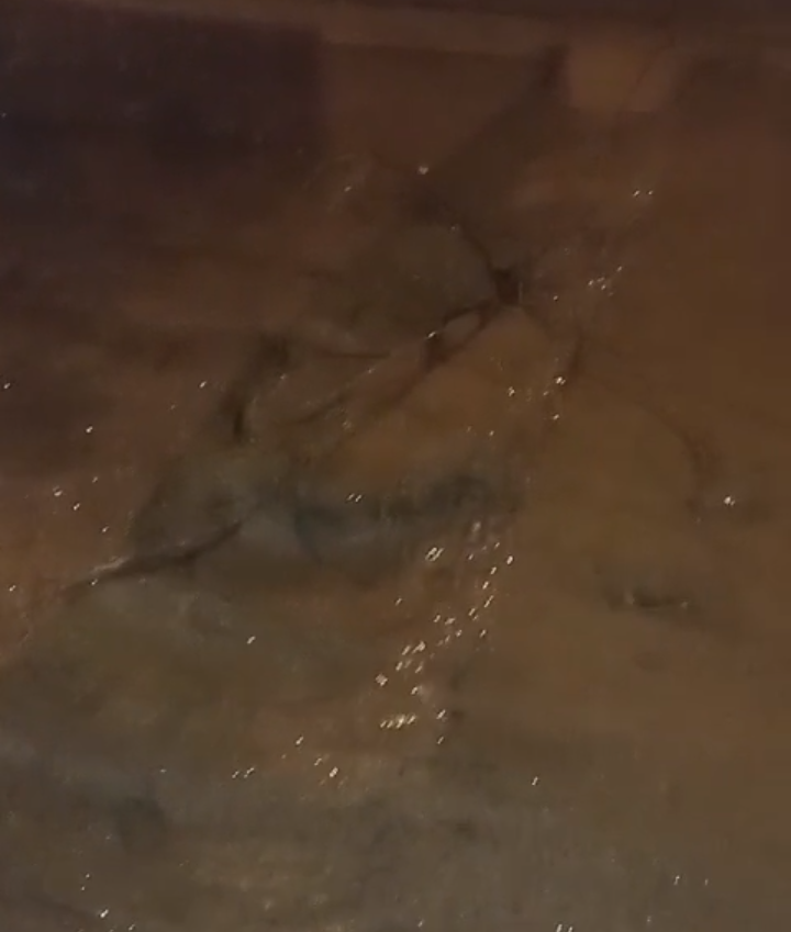 En las imágenes se observa cómo el pozo ocupa parte de la calzada, especialmente complicado en jornadas de lluvia, cuando el agua lo cubre y dificulta su visibilidad.